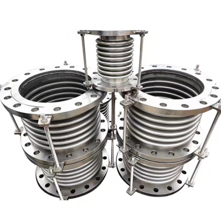 大拉桿波紋補償器(也稱為復合拉桿)是由兩個相同的波紋管和端管、端板和拉桿組成的柔性部件。管道的單平面或多平面水平位移可通過波紋管的角偏轉吸收。四個長拉桿可以承受壓力、推力和其他額外的外力。拉桿兩端的螺栓出廠前已調整間距,安裝前大拉桿松動。補償器工作變形后,大拉桿可以限制變形,保護波紋管。安裝前,大拉桿補償器通常沿熱膨脹的相反方向冷卻1/2,以獲得更大的工作補償能力。因此,在冷態下,補償器處于負變形狀態。管道加熱伸長后,波紋管依賴于靈活性和水平變形。